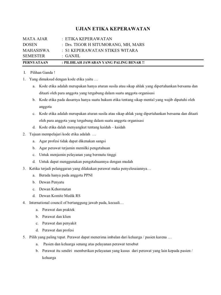 Mengidentifikasi penyebab terjadinya halusinasi e. Obat antihipertensi diresepkan untuk klien dengan hipertensi. Soal soal hots yang bikin siswa pusing itu penting tirtoid. Mengidentifikasi tanda dan gejala, penyebab, dan akibat isolasi sosial c. D penyusunan dan pemberlakuan kode etik keperawatan. 40 soal tentang seo jawabannya pilihan ganda essay demikian contoh soal uts gasal mata pelajaran penataan produk dan kunci jawaban smk kelas xii bisnis daring dan pemasaran bdp. Berikut contoh soal & pembahasan uji kompetensi perawat d3 departeman keperawatan medikal bedah (kmb). Contoh soal keperawatan dan kunci jawaban. Semoga saja contoh soal dan jawaban pilihan ganda tentang pernikahan dalam islam ini memberikan banyak manfaat. Soal uji kompetensi / ukom keperawatan keluarga dan kunci jawaban edisi 3 dibawah ini merupakan kisi kisi contoh soal uji kompetensi keperawatan keluarga serta kunci jawaban 1. Kunci jawaban soal materi diabetes mellitus kebidanan b. Apakah label yang diberikan perawat di ruangan triase untuk Lanjutan soal ukom ke 56 terdapat 5 buah soal uji kompetensi ukom beserta kunci jawabannya 1.