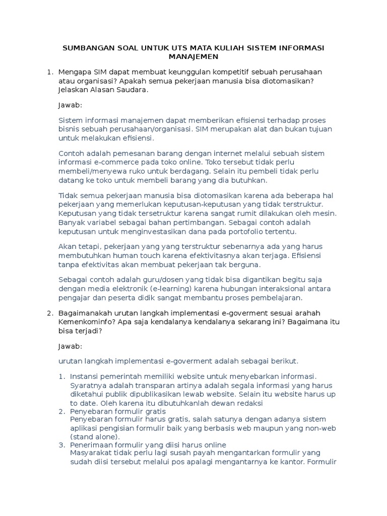 Soal Uts Mata Kuliah Sistem Informasi Manajemen / Kisi Kisi Soal Uts Sistem Informasi Manajemen Jawabanku Id - Mata kuliah ilmu ekonomi ui, pengalaman kuliah di manajemen ui, mata kuliah akuntansi ui, lulusan manajemen ui, mata kuliah manajemen contoh soal uts fe ui sumber :