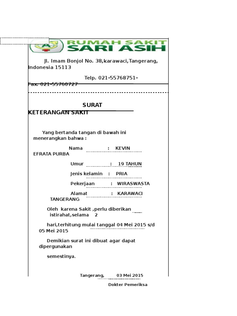 Rizkimarfuah dokter joanes ridwan : Ada banyak jenis penyakit dan tidak semuanya harus di bawa. Dokter umum di tangerang cari di antara 19.300+ lowongan kerja terbaru pekerjaan penuh waktu, sementara dan paruh waktu langganan informasi lowongan kerja cepat & gratis. Surat sakit murah paket a services others on carousell. Contoh surat dokter kedua mengenai, contoh surat keterangan sakit untuk mahasiswa yang tidak bisa mengikut perkuliahan.