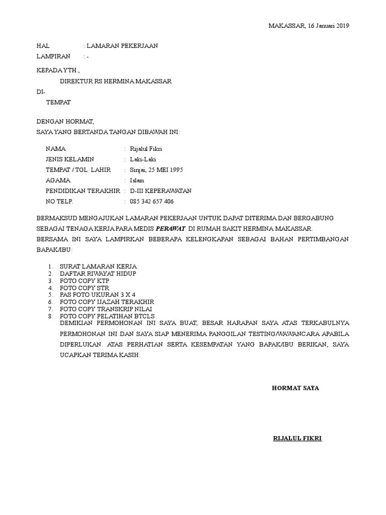Berisi contoh surat lamaran kerja di rumah sakit sebagai perawat, bidan, asisten apoteker, dan bagian administrasi. Tanda tangani oleh dokter pemerintah dari rumah sakit pemerintah atau puskesmas. Lamaran pegawai non pns blud kepada. Dalam pembuatan contoh surat lamaran pekerjaan bidan di rumah sakit atau rs ini. Kepada yth., manager hrd rs. Adapun contoh yang kita berikan ini sangat lah berbeda pada . Fotokopi surat keterangan berbadan sehat dari rumah sakit sebanyak 1 (satu) lembar; Kepada yth., hrd manager rsud kudus jalan. Text of contoh surat lamaran ke rumah sakit. Pmi no 250 semanggi, jakarta. Contoh surat lamaran kerja di rumah sakit tentunya sangat diperlukan bagi mereka yang berencana melamar pekerjaan di rumah sakit. Pasfoto ukuran 3x4 sebanyak 4 (empat) lembar. Contoh surat lamaran kerja perawat untuk kebutuhan tenaga kerja medis khususnya di rumah sakit, puskesmas dan lain lain.