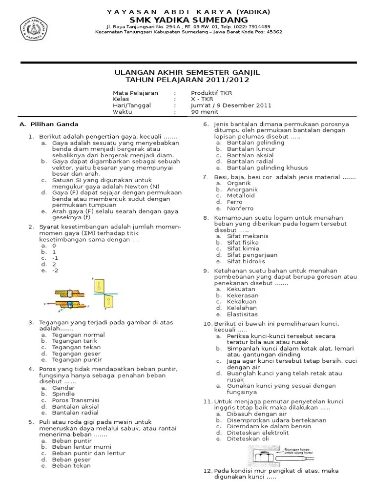 Download bank contoh soal bahasa indonesia kelas 10 semester 1 dan semester 2 kurikulum 2013 soal eassy pilihan ganda & Demikianlah contoh soal pdto kelas 10 beserta jawabannya semoga. Sumber soal uts kelas x semester 2 kurikulum 2013 semua mapel ini mengacu pada materi pelajaran yang terdapat dalam buku paket/perangkat pembelajaran yang sudah meliputi 4c (creative, critical thinking, communicative, collaborative), hots (higher order thinking skill), dan dilengkapi dengan ki1, ki2, ki3, dan ki4 yang bertujuan menumbuhkan sikap spiritual, sikap sosial, pengetahuan dan. Pekerjaan dasar teknik otomoti f pe r temuan perminggu : 6 jam pelajaran @ 45 menit.