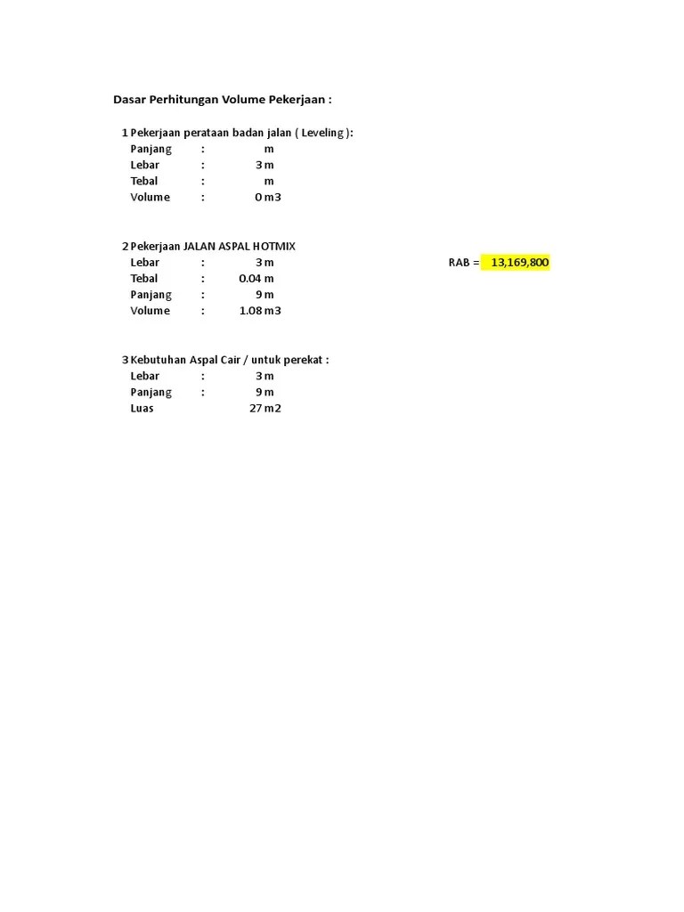 Rincian anggaran biaya ( rab ) pembuatan jalan baru per meter persegi, harga bembuatan jalan aspal hotmix terbaru, pengecoran jalan beton ready mix. Perencanaan rehabilitasi jalan dimaksud agar lalu lintas jalan bisa dilayani dengan. Aspal ialah bahan hidro karbon. Pekerjaan jalan panjang jalan rencana l. Rab pengaspalan jalan, kontraktor aspal jalan hotmix di cibubur, bekasi, bandung, jakarta, depok, bogor, cikarang, karawang, serpong bsd, banten jawa barat .