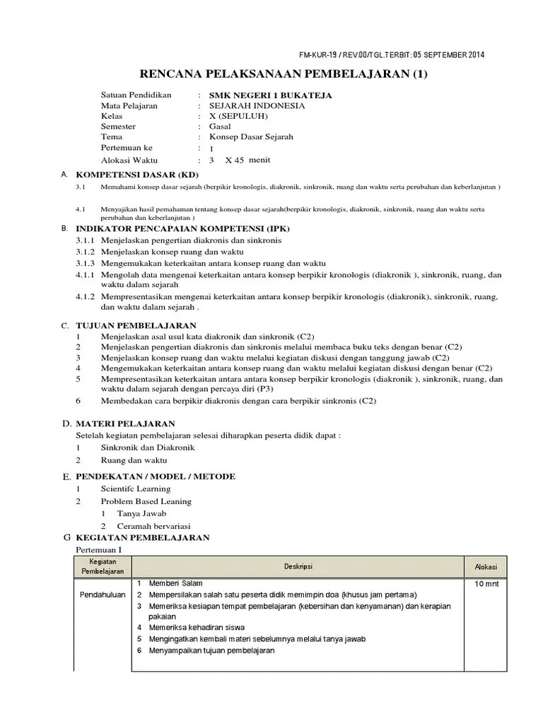 Rpp 1 lembar sejarah indonesia sma kelas 10 semester 2 kurikulum 2013 revisi 2021/2022 dibagikan secara gratis untuk melengkapi perangkat pembelajaran/ .